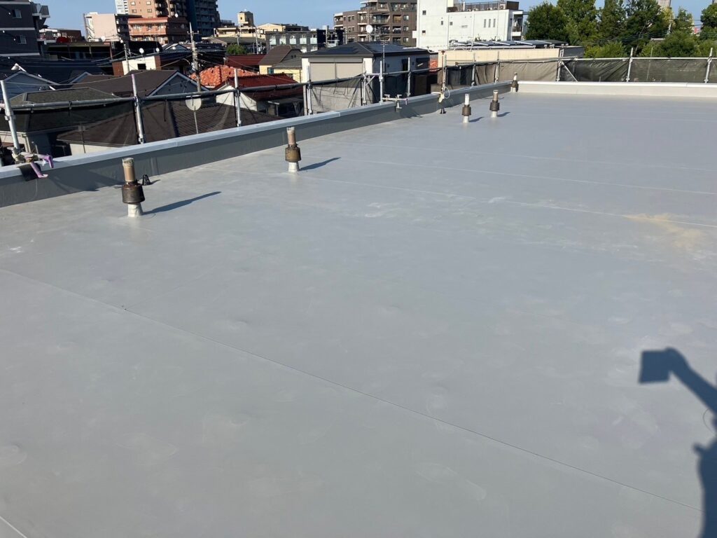 また、屋上防水には AGCポリマー建材「サラセーヌ通気緩衝工法」 を採用し、耐久性の高い防水施工を実施。